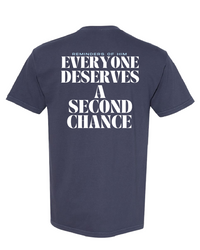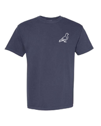 Navy Comfort Colors, relaxed fit short sleeve tee. Printed front and back graphics. 100% ring spun cotton. Preshrunk, soft-washed, garment-dyed fabric.