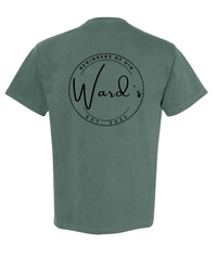 Green Comfort Colors, unisex relaxed fit short sleeve tee. Printed front and back graphics. 100% ring spun cotton. Preshrunk, soft-washed, garment-dyed fabric.